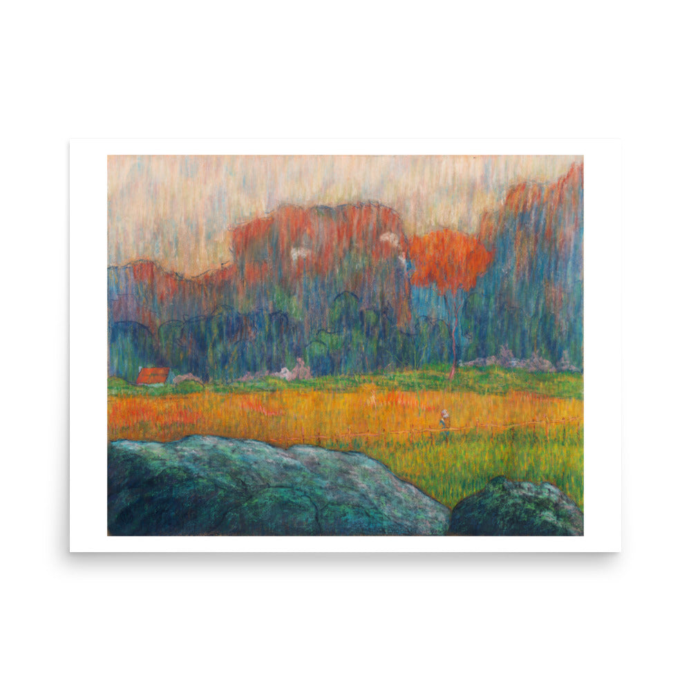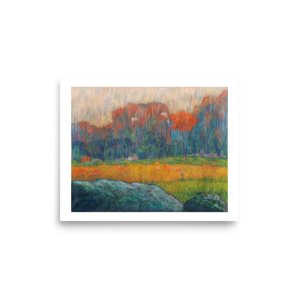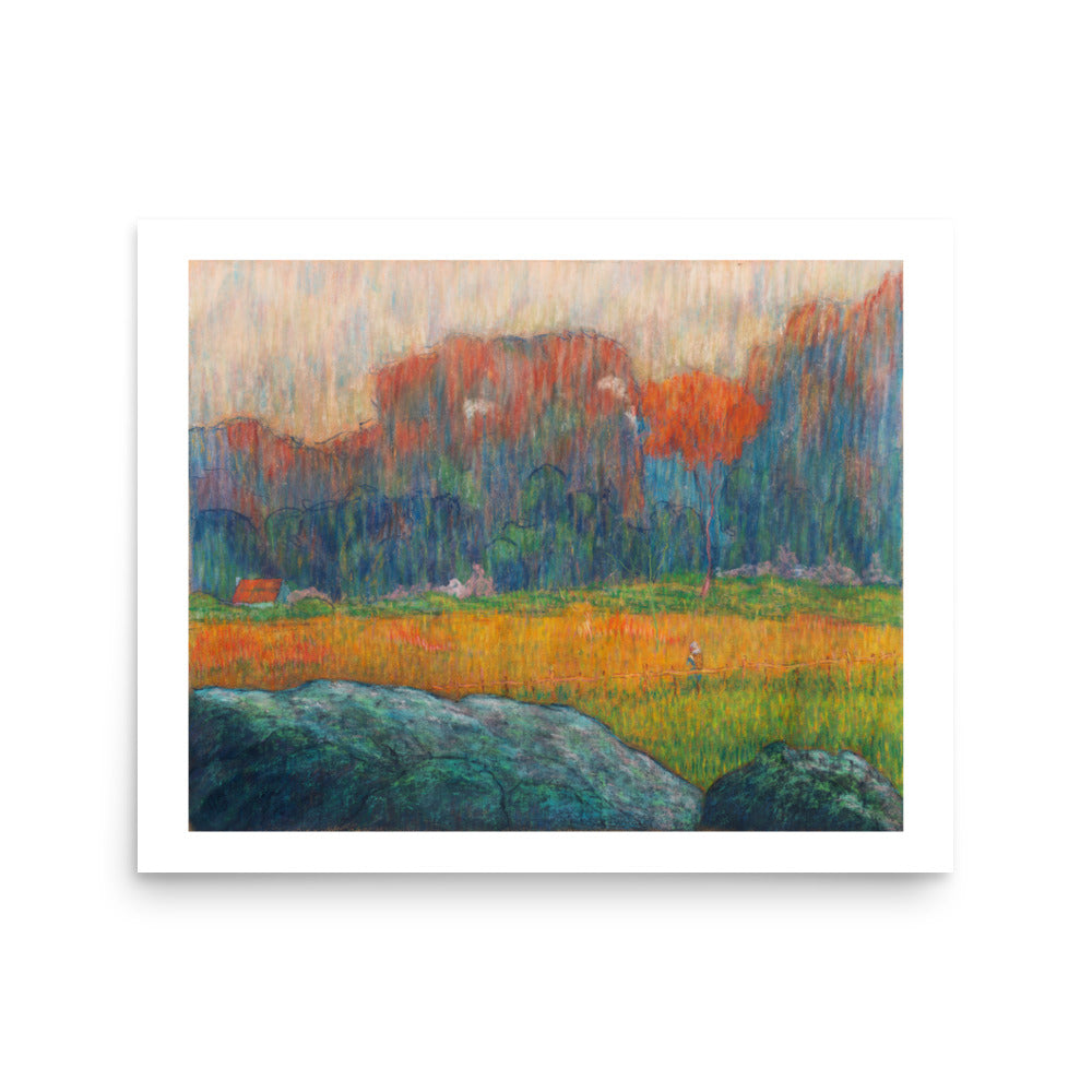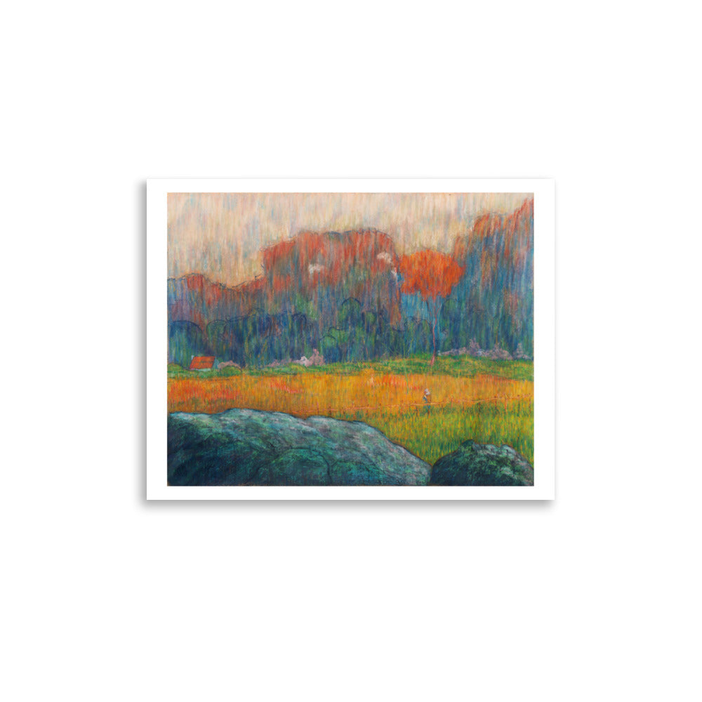 With softened forms and warm, muted tones, Schuffenecker’s Landscape with Figure and Houses offers a tranquil view of rural life touched by memory. The lone figure, small and contemplative, anchors a world of sloping hills, clustered homes, and gentle atmosphere. Part observation, part reverie, the piece invites a quiet pause — a moment where place and emotion meet in silence.