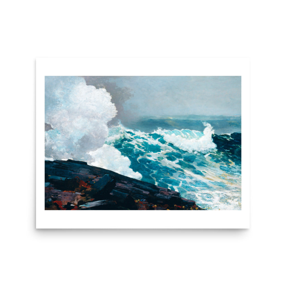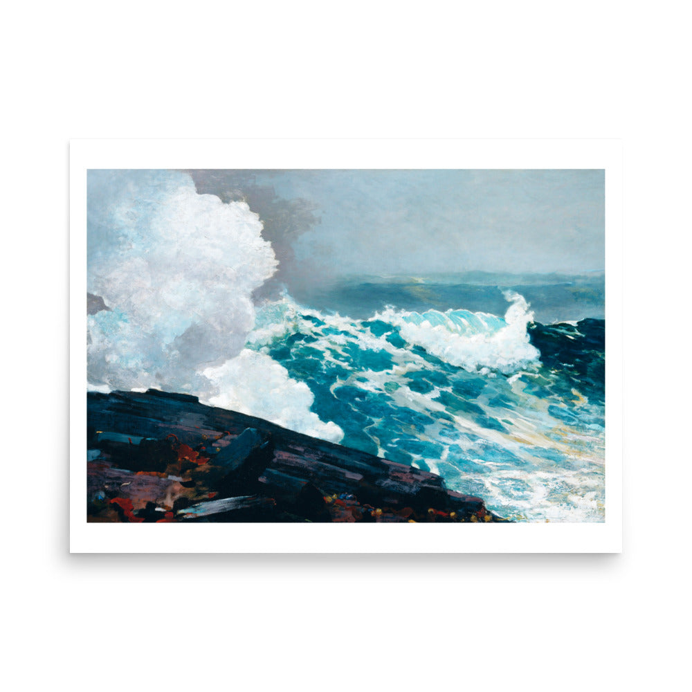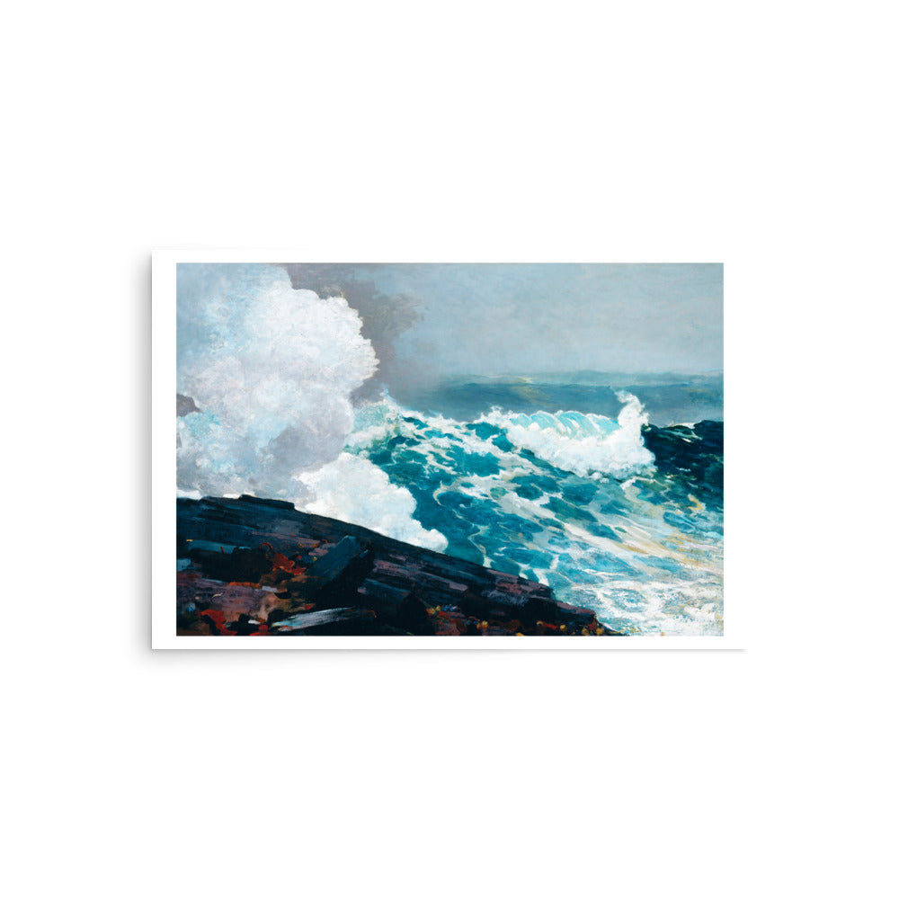 Winslow Homer’s Northeaster captures the raw, elemental force of the Atlantic coast in motion. With sweeping brushwork and storm-muted tones, the seascape is alive with crashing waves and coastal wind — a study in nature’s power and solitude, rendered with Homer’s signature intensity and restraint.