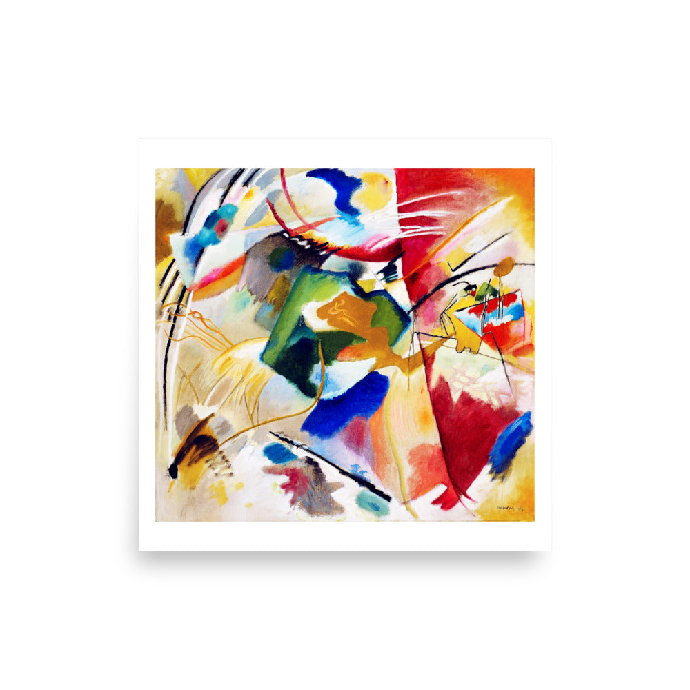 Wassily Kandinsky’s Painting with Green Center is a symphony of color, form, and spiritual resonance. Bursting with energetic brushwork and rhythmic geometry, the composition resists interpretation — inviting instead a felt response. The bold green core anchors a world in motion, where emotion, intuition, and abstraction converge in pure visual language.